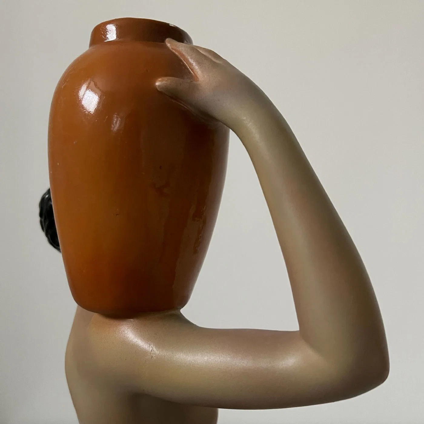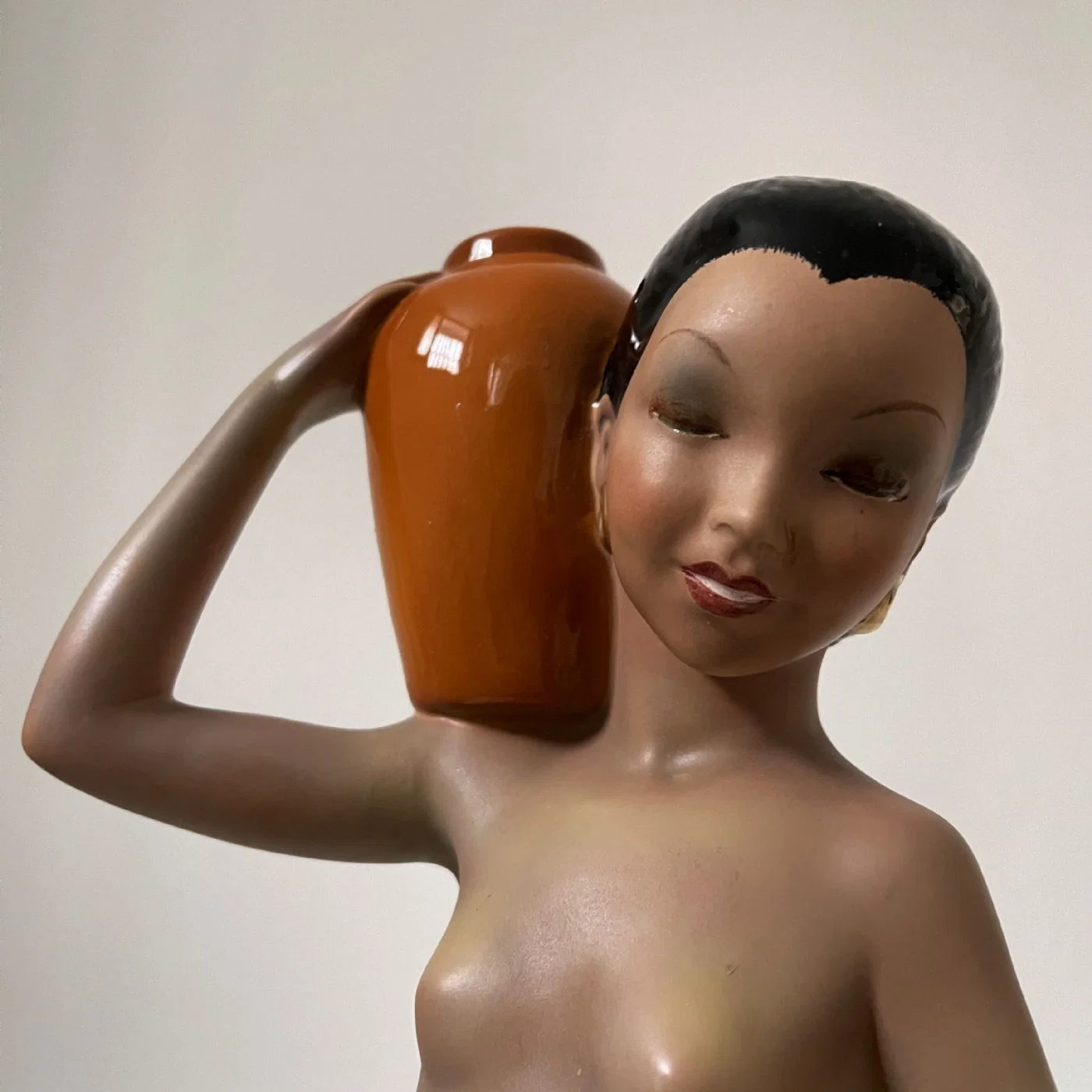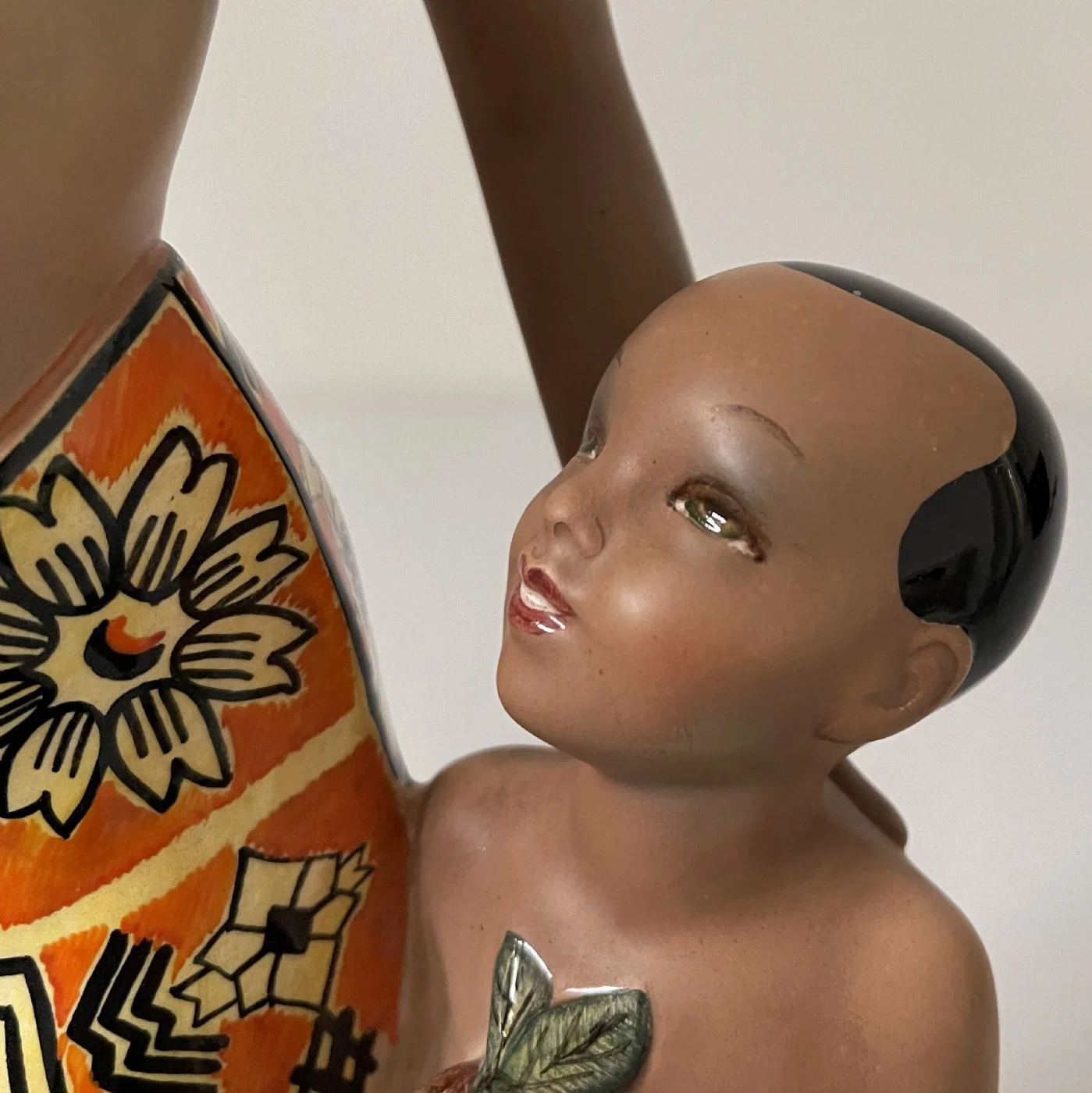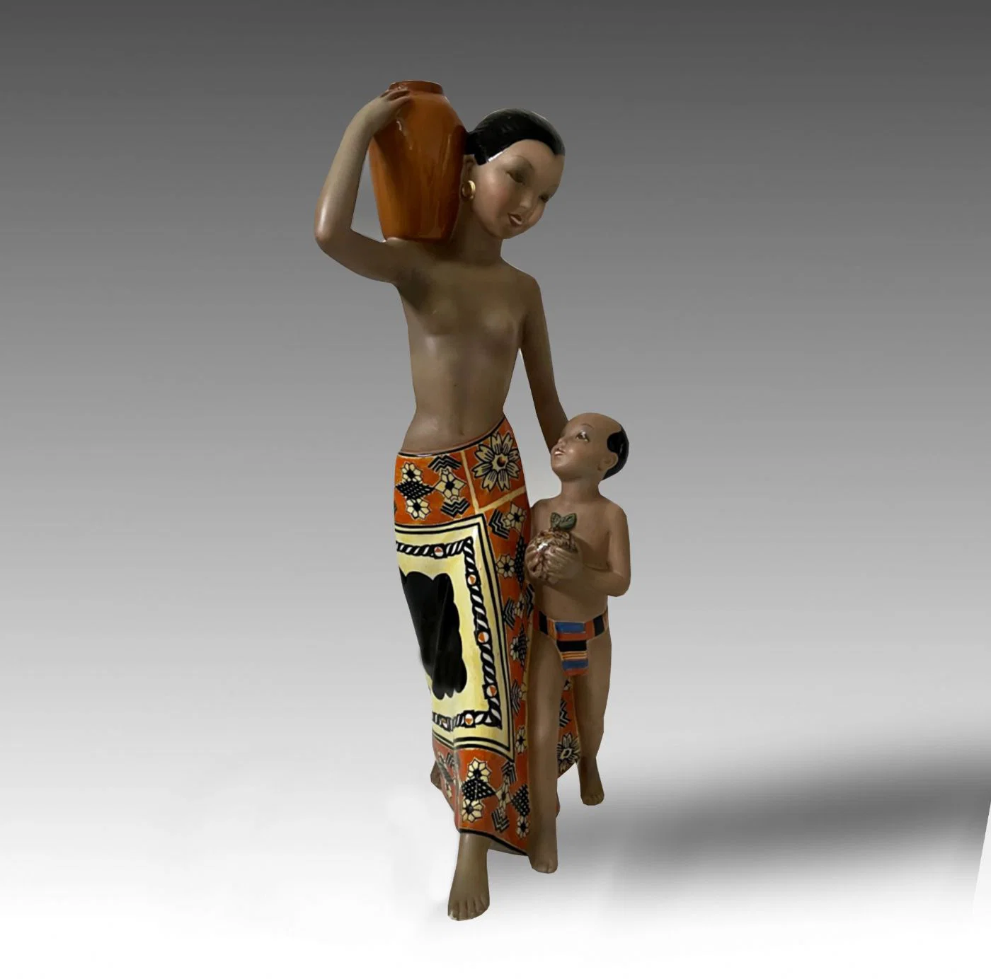 Scultura in ceramica dipinta in policromia intitolata “Amore africano”, manifattura C.I.A. Manna di Torino.