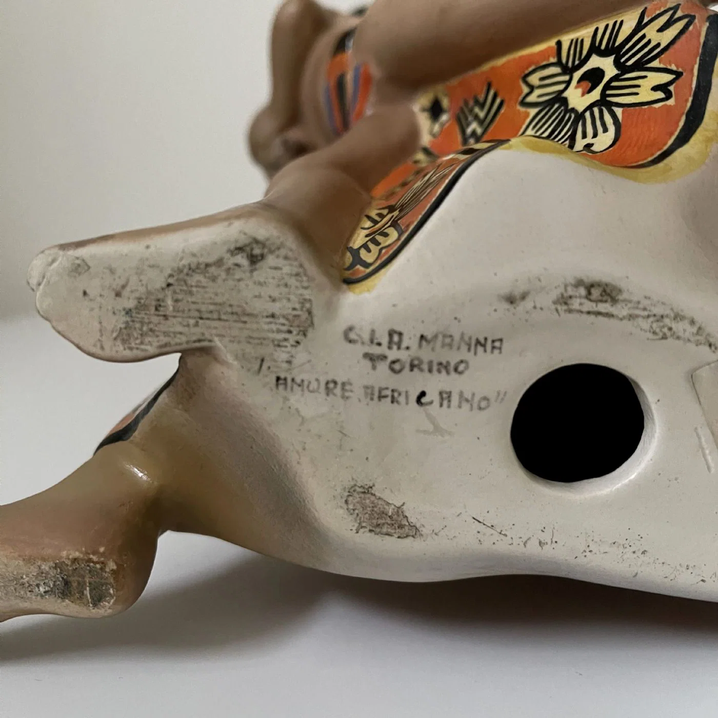 Sotto la base reca dipinto in nero “C.I.A. MANNA TORINO Amore africano”