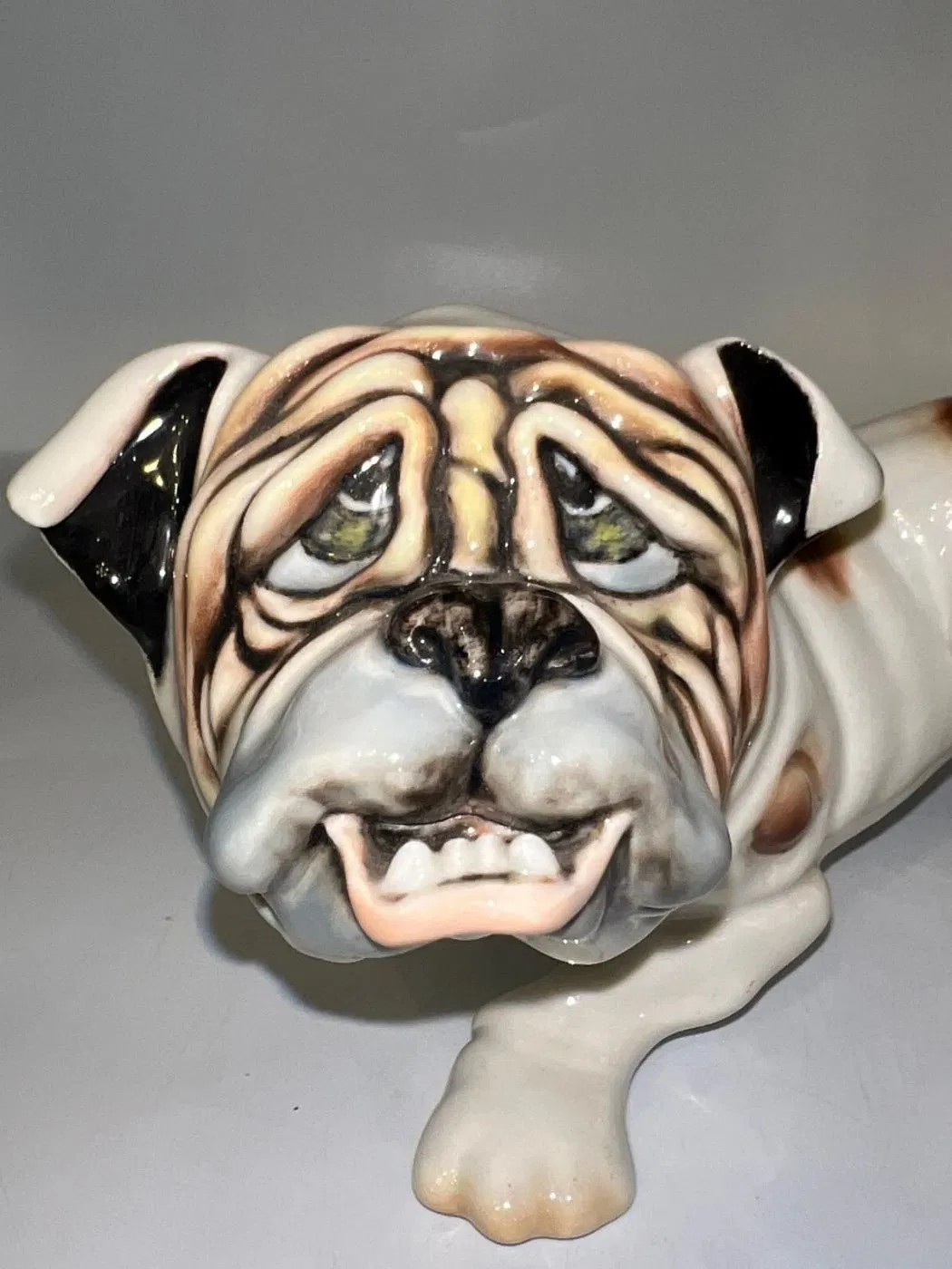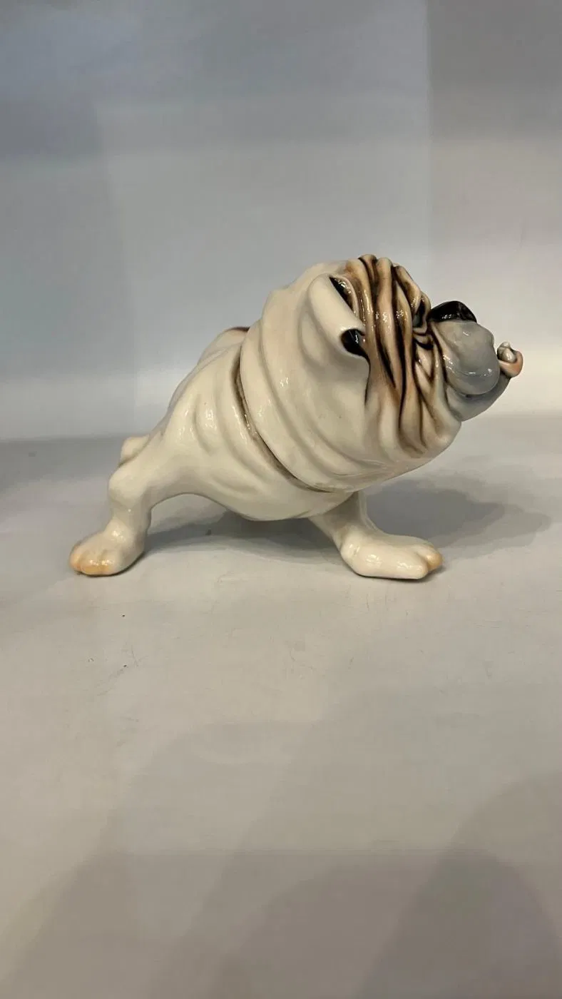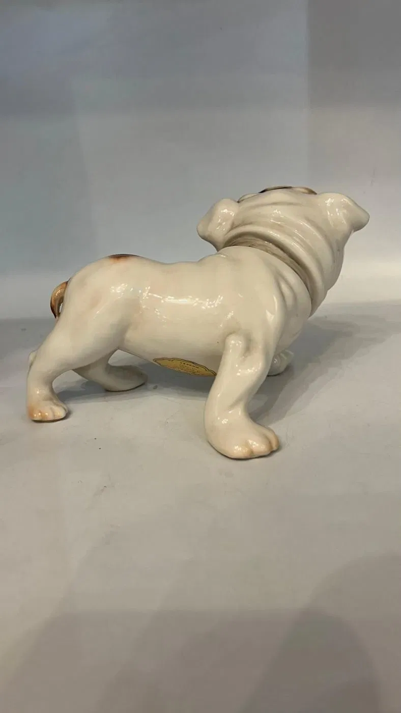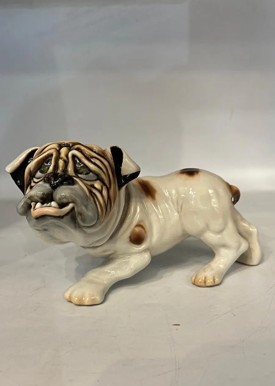 Ceramica policroma raffigurante un cane bulldog, della manifattura Cacciapuoti, artista Sandro Righetto.