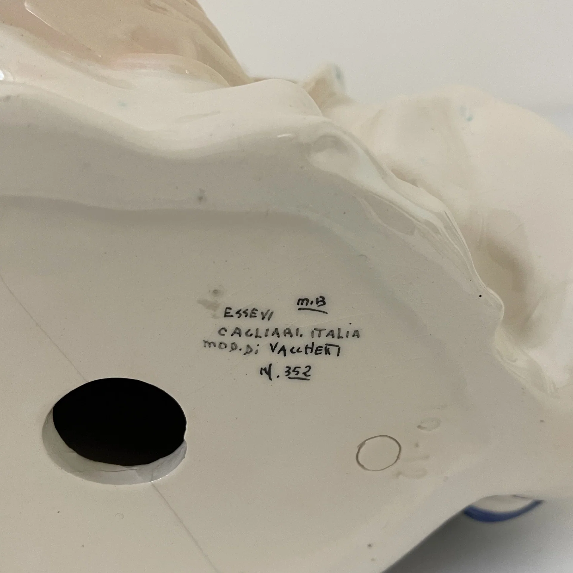 Marchio dipinto sotto la base “Essevi Cagliari Italia Mod.di Vacchetti N.352”