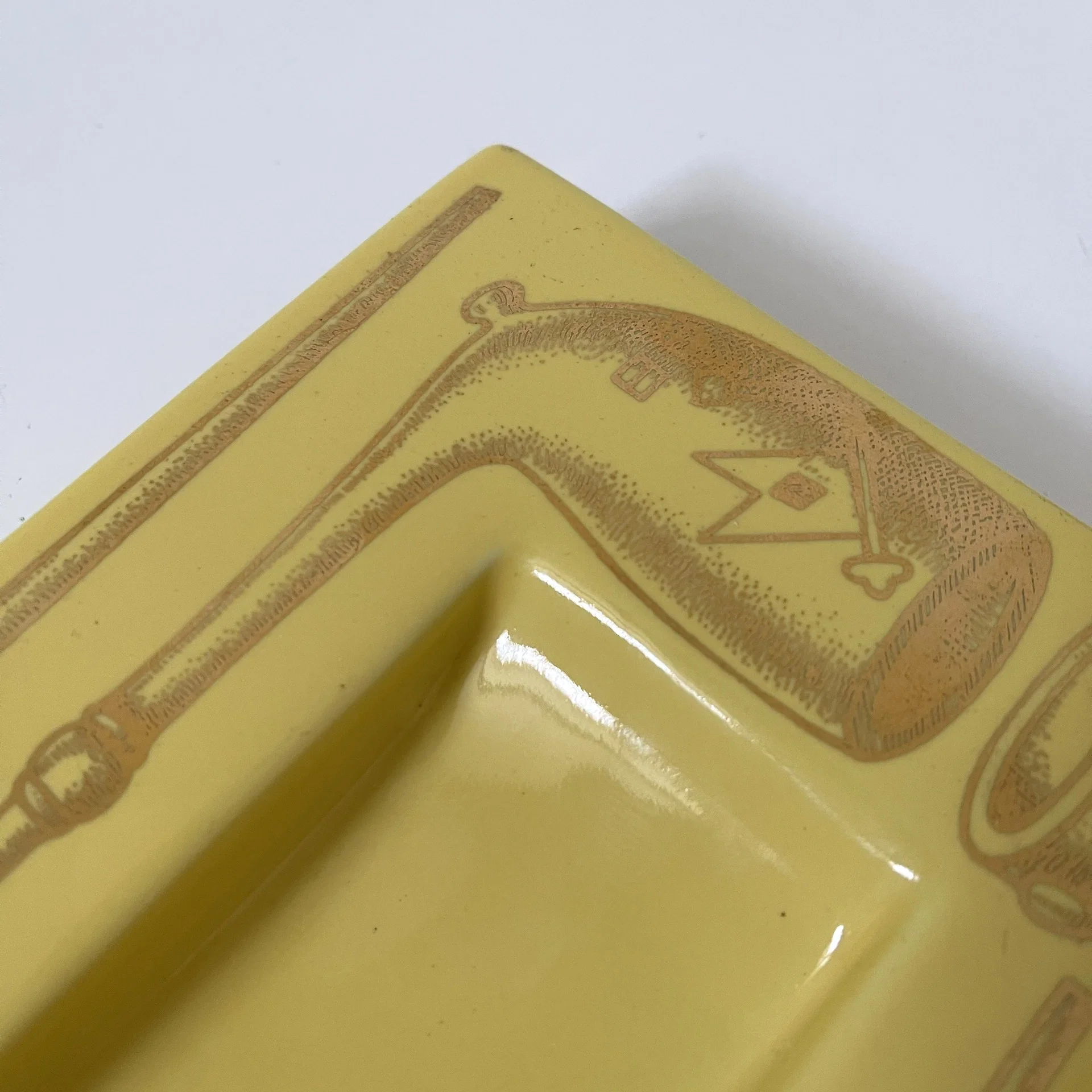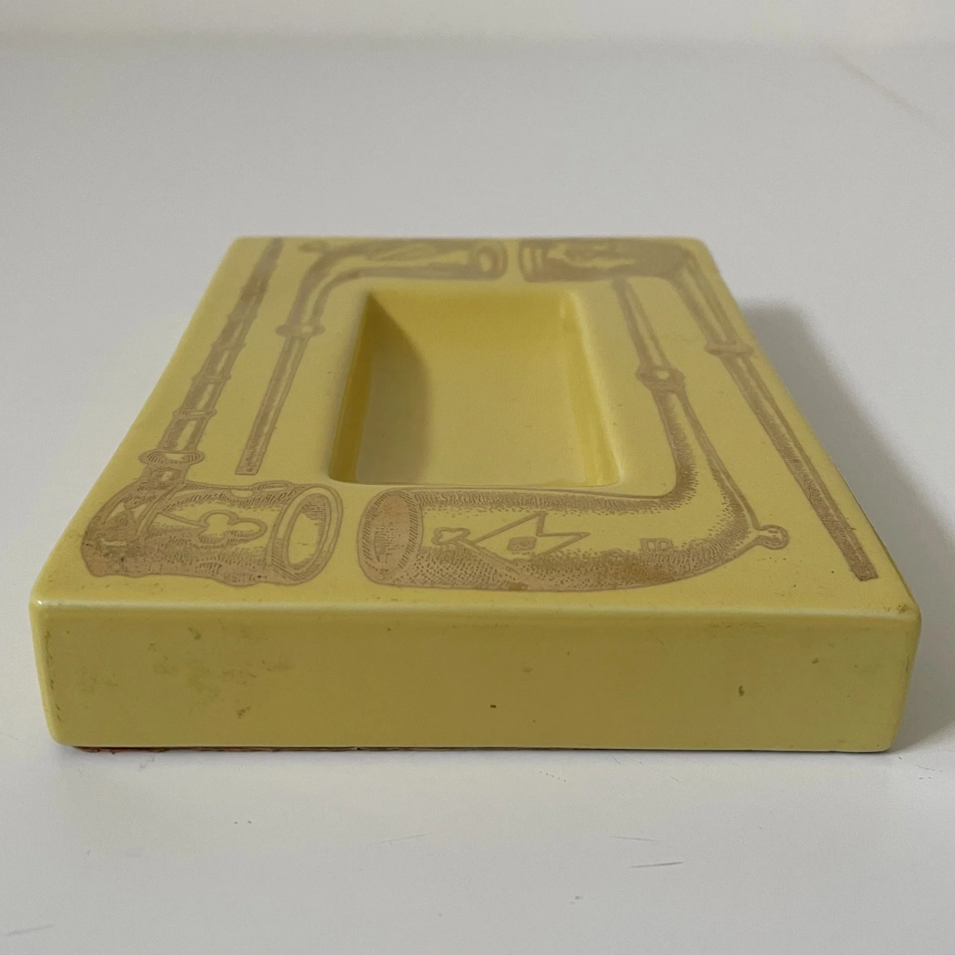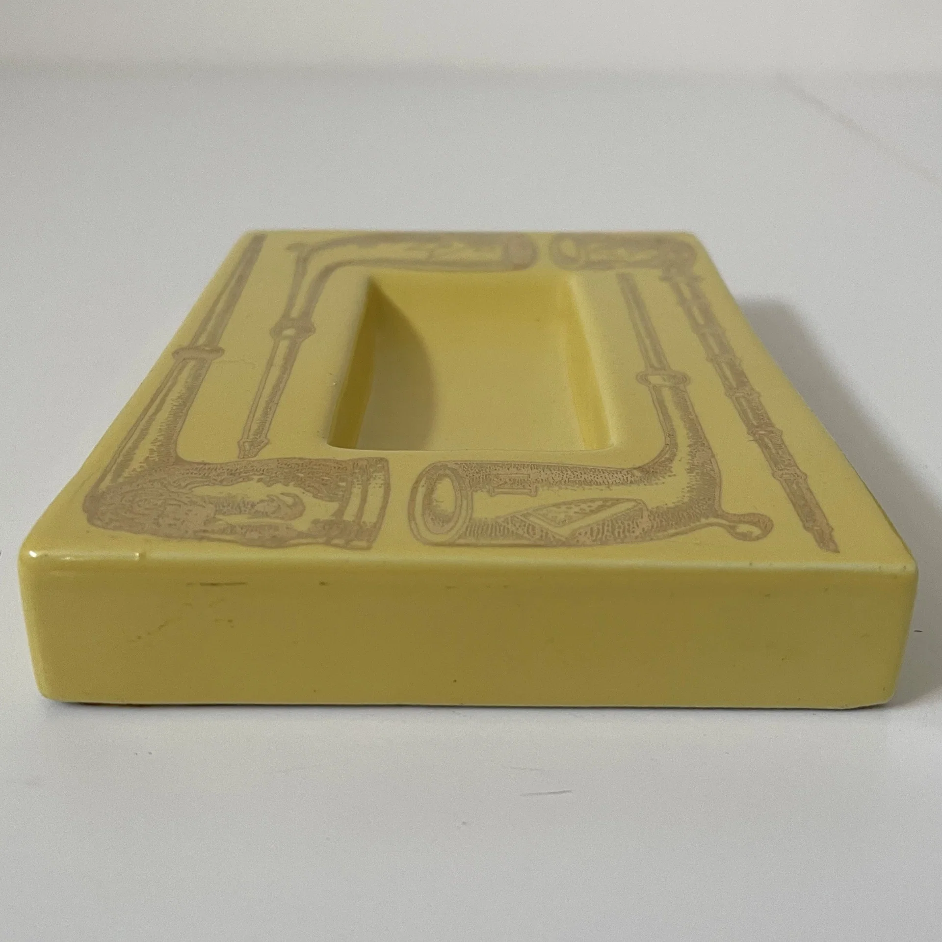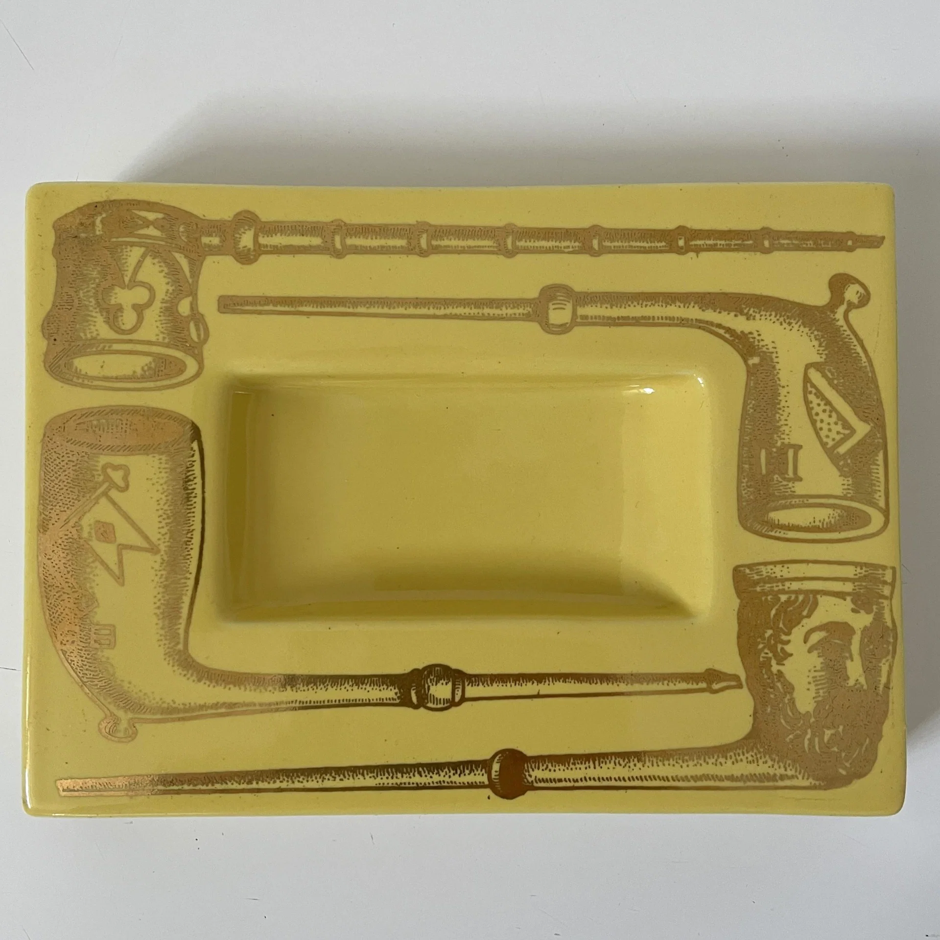Posacenere serie Pipe ceramica serigrafata, giallo oro – Piero Fornasetti