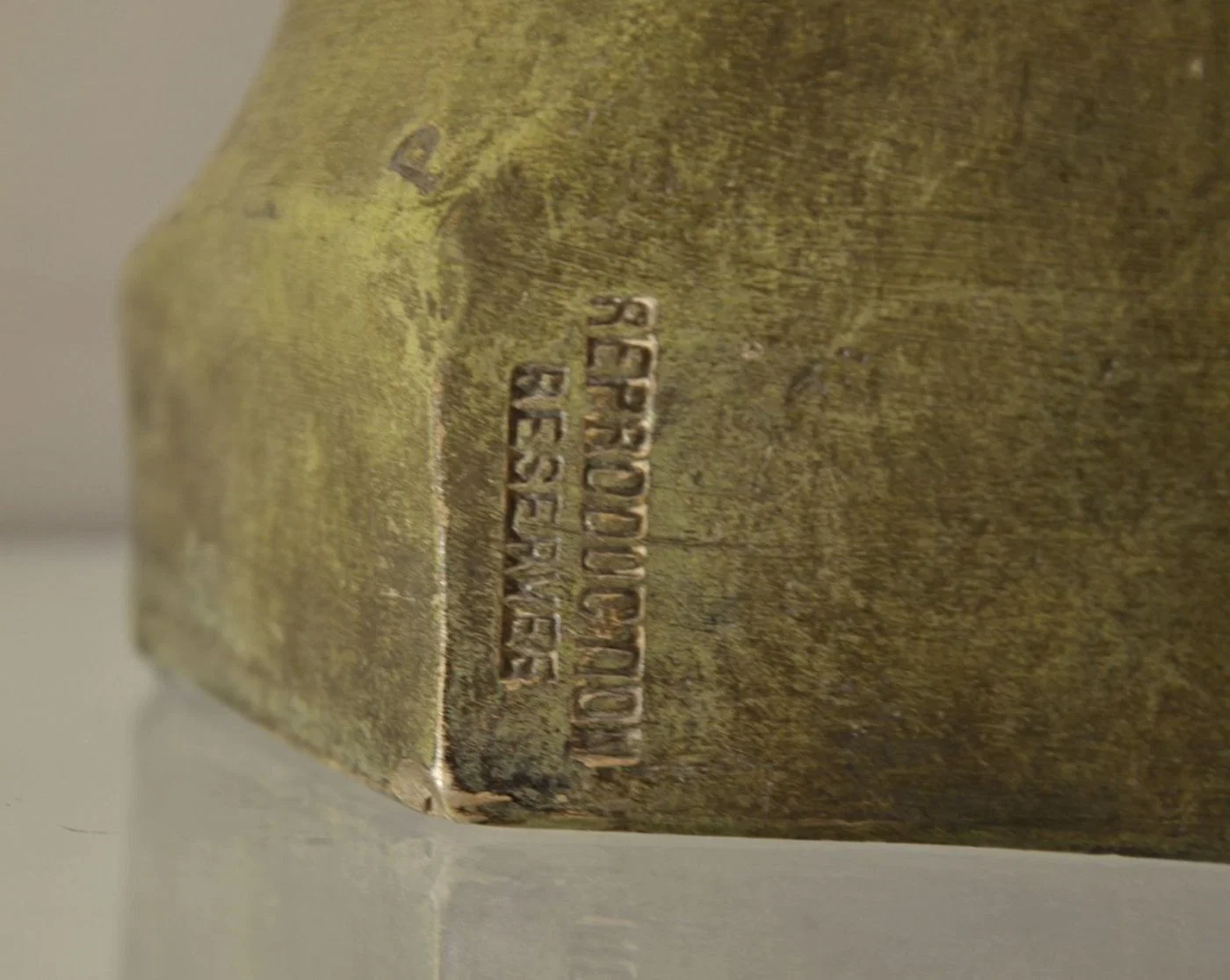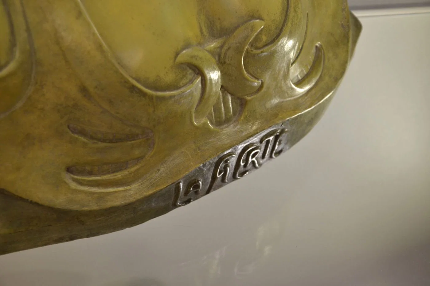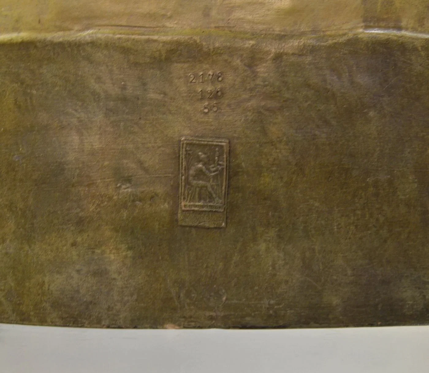 Nella parte bassa del busto, scritto a rilievo in caratteri Art Nouveau si legge il titolo dell’opera “LA FIERTE’ “(dal francese “l’orgoglio”). Nella parte retrostante si scorge in basso la scritta “Reproduction Reservée” mentre sempre nel retro, nella parte centrale si legge “2178 126 55” e poco più in basso il marchio della manifattura.