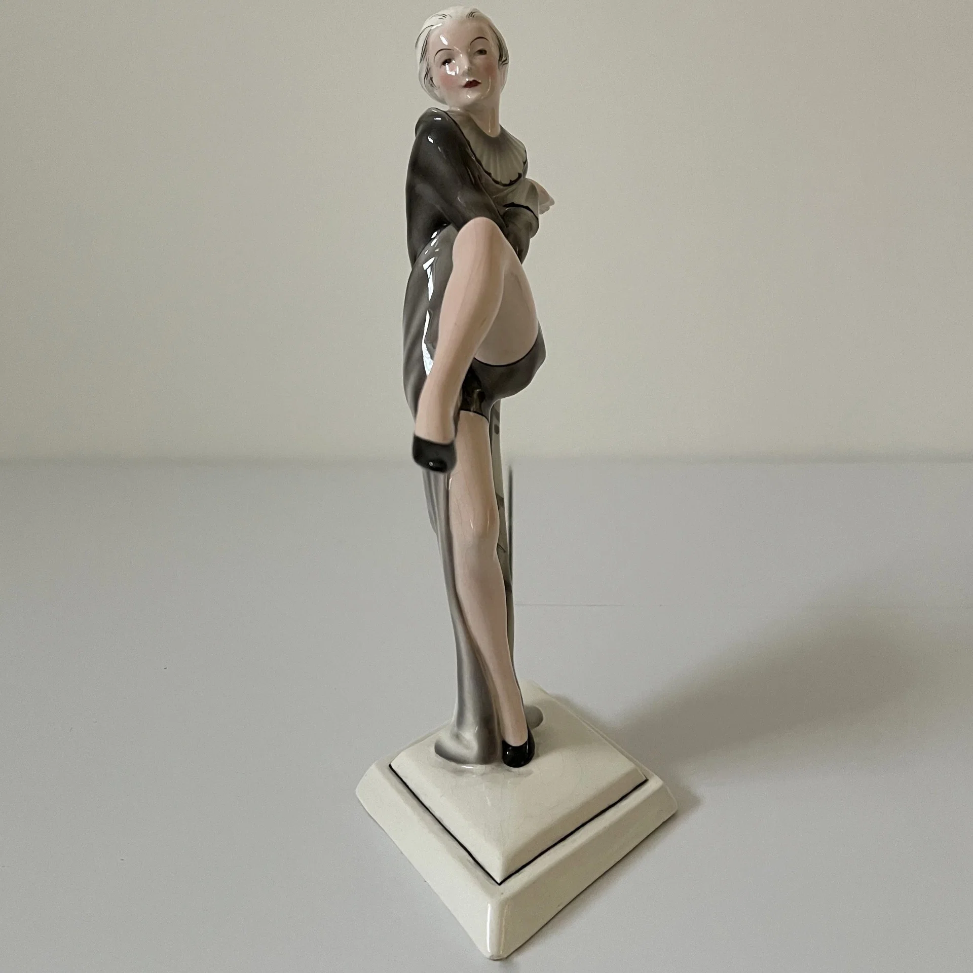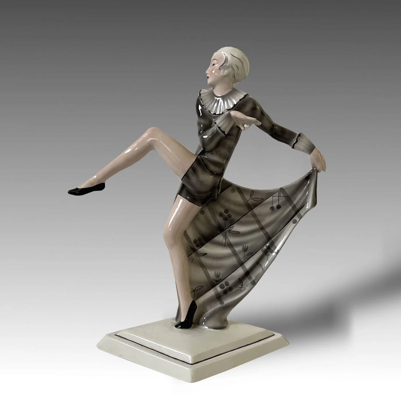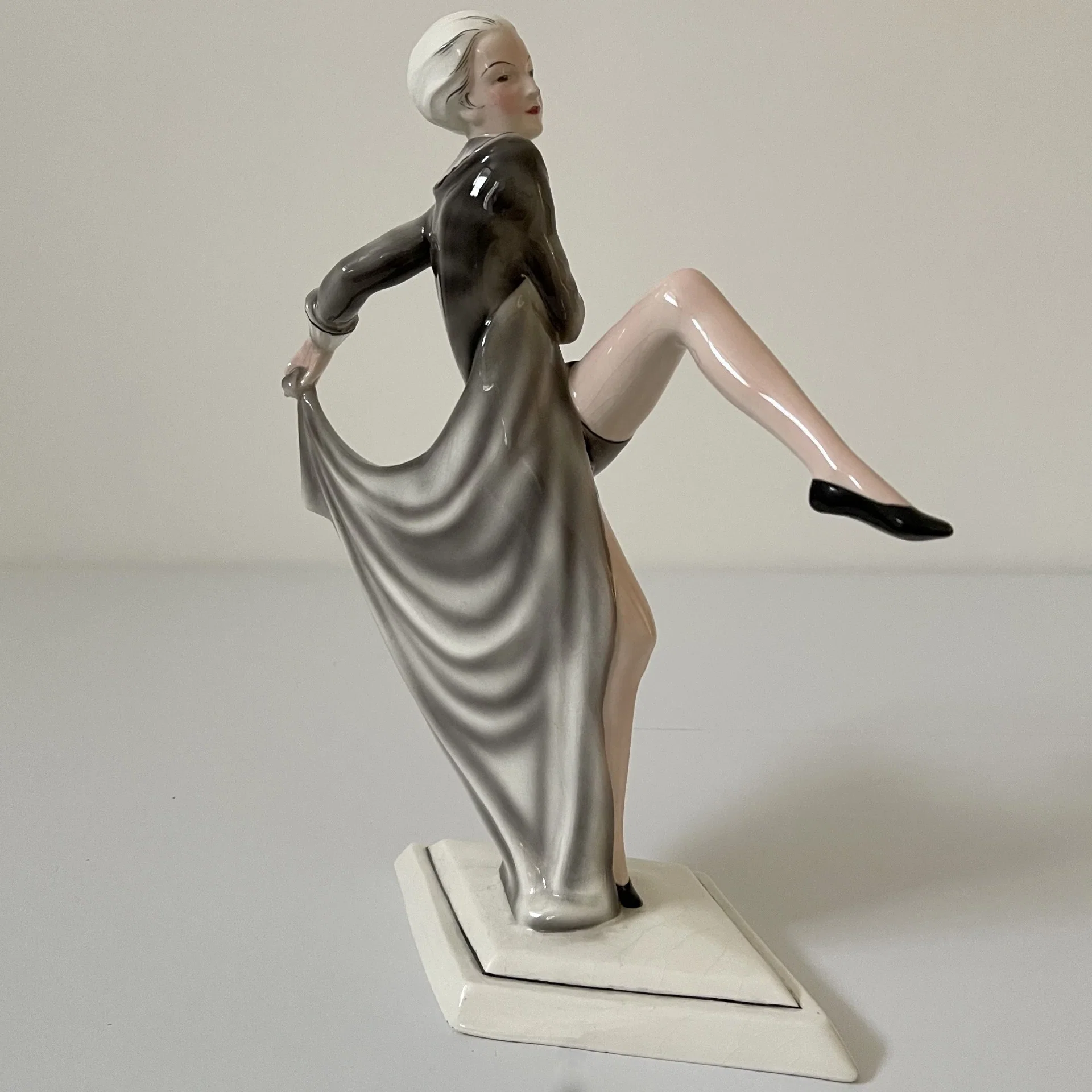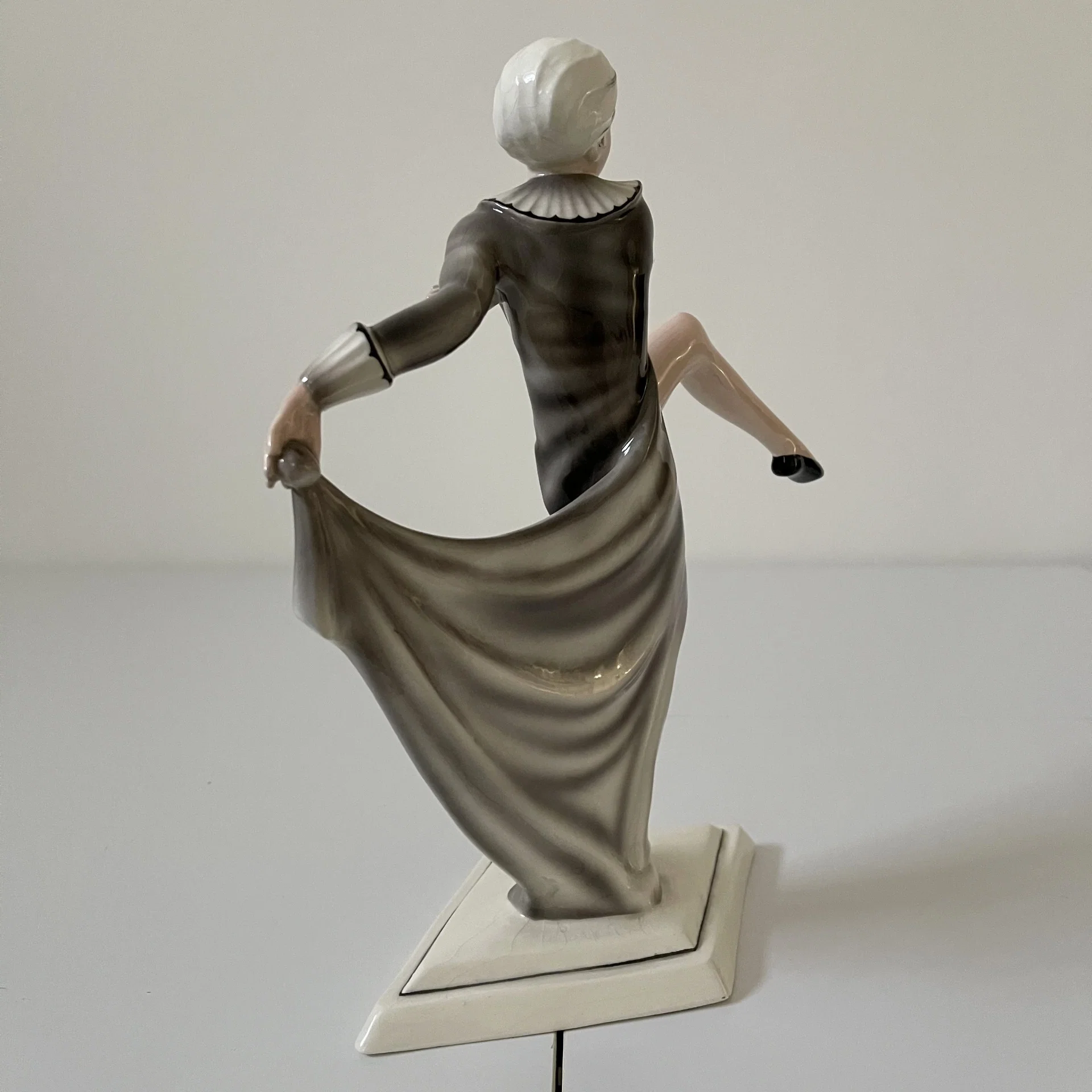La donna qui raffigurata è uno dei marchi di fabbrica della produzione del Lorenzl, aggraziata in tutto il suo sviluppo e scandita dalle leggiadre movenze del suo corpo esile. La cadenza musicale dei suoi passi appena accennati e l’andamento stilistico del suo bacino e delle sue braccia rendono giustizia a questo piccolo capolavoro evocandoci i raggianti Anni ‘20, richiamando alla mente intramontabili miti come Niddy Impekoven o come Joséphine Baker.